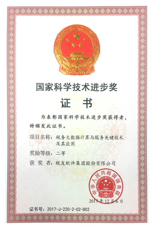 近日,2017年度国家科学技术奖励大会在北京人民大会堂举行。税友集团与西安交通大学合作的“税务大数据计算与服务关键技术及其应用”项目荣获2017年度国家科技进步奖二等奖。这是税友集团继2014年度荣获中国电子学会“科学技术奖”一等奖以来,再度获得分量更重的国家级科技大奖。