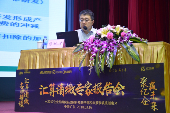 3月16日,由亿企赢财税学院主办的“2017企业所得税汇算清缴专家报告会暨亿企赢2017年度汇缴通关攻略系列课开幕式”在广州举行。此次报告会,亿企赢财税学院邀请到国家税务总局扬州税务进修学院教研一部税务稽查教研室主任陈斌才教授为学员做现场报告。来自广东各地税务干部、重点企业代表、税务事务所代表等共计300余名业内人士参与学习交流。