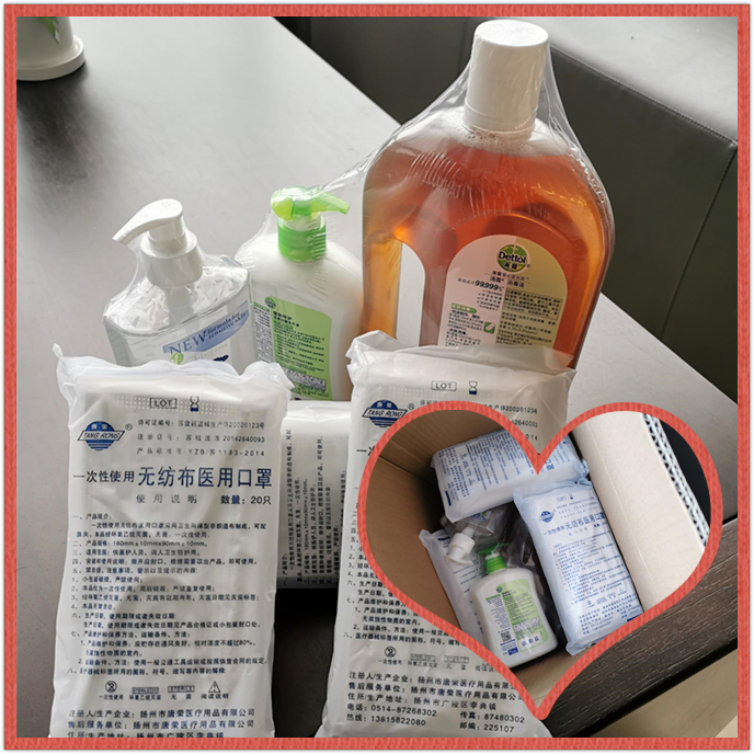 (包含口罩、消毒液和洗手液的爱心防护包裹)