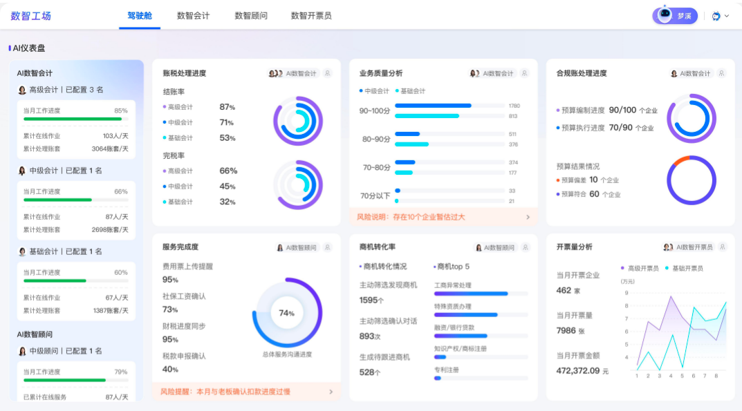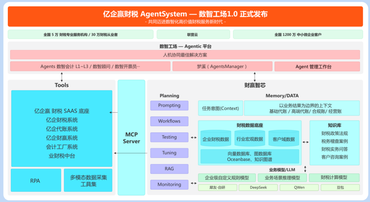本次发布会的重头戏是财税行业首个Agentic平台“数智工场”的发布,为财税服务机构破解发展痛点提供了颠覆性方案。面对行业普遍存在的人效低、成本高、服务质量难把控等问题,亿企赢首席产品官周源发布了“驾驶舱+数智会计+数智合规顾问”产品矩阵,将幻觉率下降至10%以下,打造人机协同的全新作业模式。目标助力5万家财税服务机构实现人效百倍提升,为百万家中小企业搭建AI财务部门。